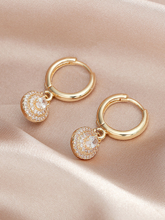 Temperament Heart-Shaped Copper Inlaid Zircon Simple Earrings
