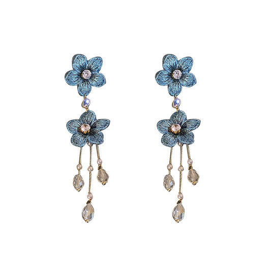 High Quality Fashion Silver Needle Diamond Pearl Crystal Flower Tassel Earring