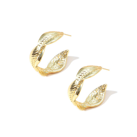 High Quality Fashion Twisted Leaf Earrings Exaggerated Golden Big Earrings