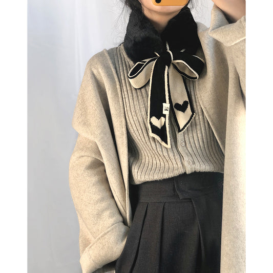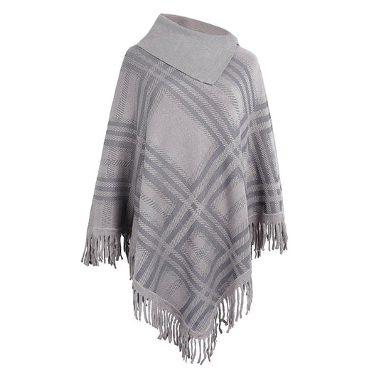 High Quality Fashion Women's Knitted Checkered Lapel Cape Shawl Coat