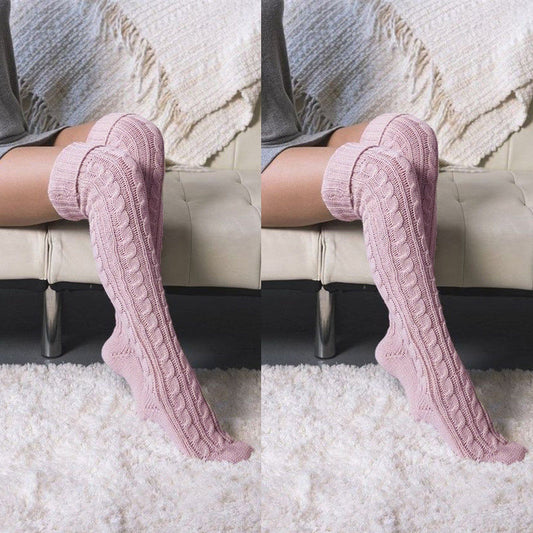 High Quality Fashionable Temperament Solid Color Knitted Over-knee Pile Socks