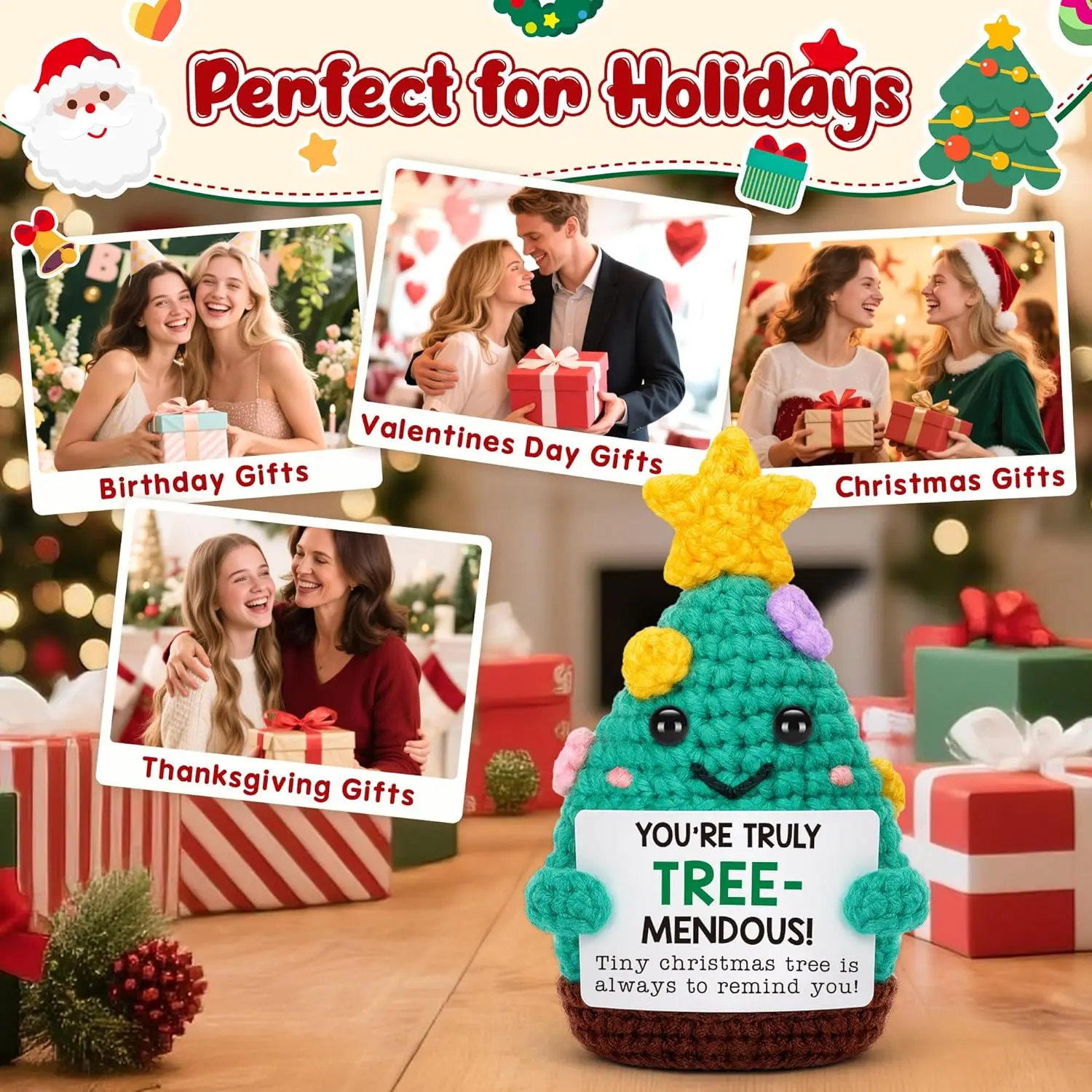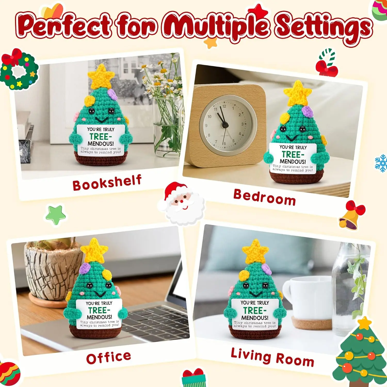 MAGGIE QUEEN Mini Handmade Christmas Tree Crochet Decor Merry Inspirational Cheer up Gifts for Sister Friends Mom Grandma Christmas Gifts